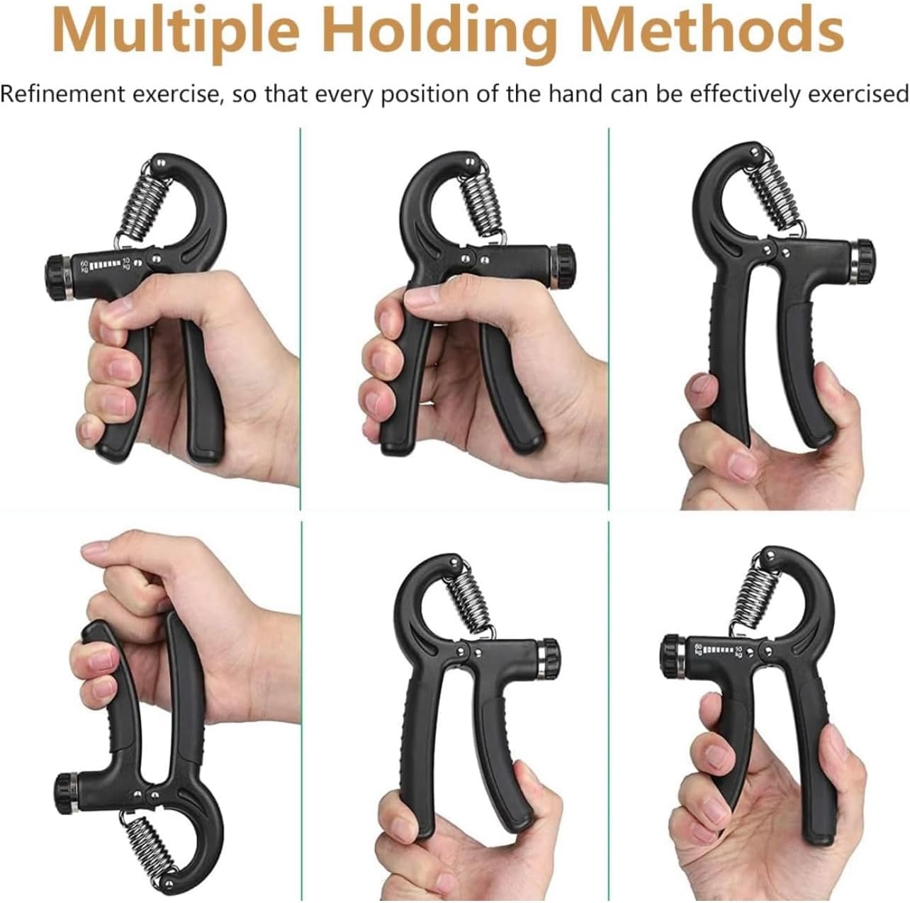 Juego de fortalecedores de agarre de mano (5 piezas), agarre de antebrazo, resistencia ajustable, pinza de mano, entrenador de dedos, anillo de agarre y pelota de agarre para aliviar el estrés Acerca de este artículoDISEÑO EFECTIVO El diseño curvo de nuestras empuñaduras se adapta perfectamente a sus manos y minimiza la tensión y la fatiga durante el ejercicio. Mejorar la fuerza de agarre puede ayudarle a evitar lesiones cuando practica deportes o realiza tareas diarias en las que necesita manipular objetos.✅ MATERIALES DE ALTA CALIDAD: con un mango texturizado para un agarre perfecto, este producto está diseñado para brindar la máxima comodidad y rendimiento. Puede fortalecer su agarre mientras viaja con estas empuñaduras de mano debido a su forma compacta, lo que las hace fáciles de llevar a casa o al trabajo y útiles para viajar o el gimnasio. Estas empuñaduras están hechas de goma antideslizante de alta calidad, lo que les da una durabilidad excepcional y un agarre firme durante cualquier ejercicio.✅ AJUSTABLE: puedes ajustar la resistencia a tu propio ritmo ajustándola fácilmente desde principiante hasta avanzado. Con los niveles de resistencia que puedes cambiar, puedes progresar gradualmente y presionarte a ti mismo. Nuestras empuñaduras de mano son perfectas para cualquier persona que se recupere de lesiones en la muñeca o la mano. Pueden mejorar la destreza y facilitar la rehabilitación.✅ IDEAL PARA TODOS: adecuado para una variedad de actividades, como deportes, relajación del estrés, rehabilitación y entrenamiento de fuerza. La fuerza de agarre es importante para los atletas de levantamiento de pesas, escalada, artes marciales, tenis, golf, lucha libre y béisbol. Las pinzas de mano también pueden ser útiles para trabajadores de oficina, personas mayores y músicos, especialmente guitarristas, pianistas y bateristas.